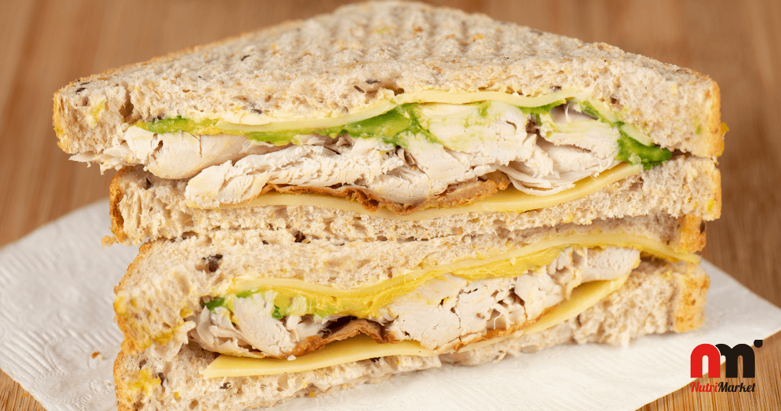 Sandwich de aguacate, pollo y queso