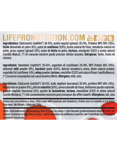 The best pink cream with hazelnut and strawberry. The perfect blend with 12% protein isolate, no added sugars or artificial preservatives.