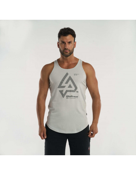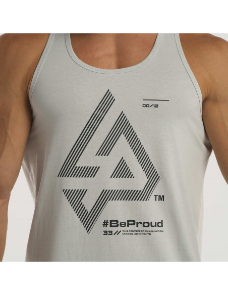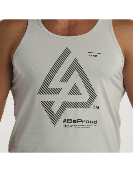 Featuring a bold logo and the #BeProud hashtag on the chest, this muscle tee conveys confidence and motivation. It’s for those who value a daring style and a visual statement of their character and determination.