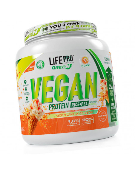 Life Pro Vegan Protein 900g Organic Protein contains no soy, lactose, sugars or cholesterol, so it seems obvious that it is compatible with virtually any diet. Nothing will hinder the benefits of protein, so you can reach your goals without having to worry about anything else. It is available in three delicious flavors: cookies, chocolate cinnamon and banana split.