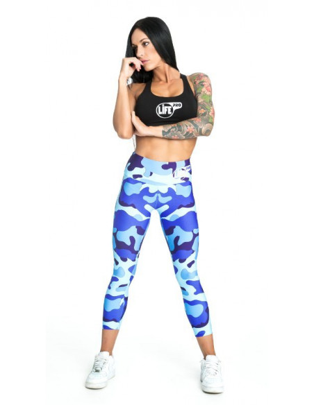 LIFE PRO MALLAS DEPORTIVAS BLUE CAMOUFLAGE diseñadas especialmente para la práctica del fitness y de bodybuilding. Diseño camuflaje azul.