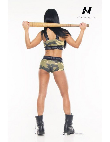 Han sido confeccionados con algodón, un material ultrarresistente y cómodo. Pertenecen a la línea de camuflaje de Nebbia. También puedes encontrar los tops a juego.