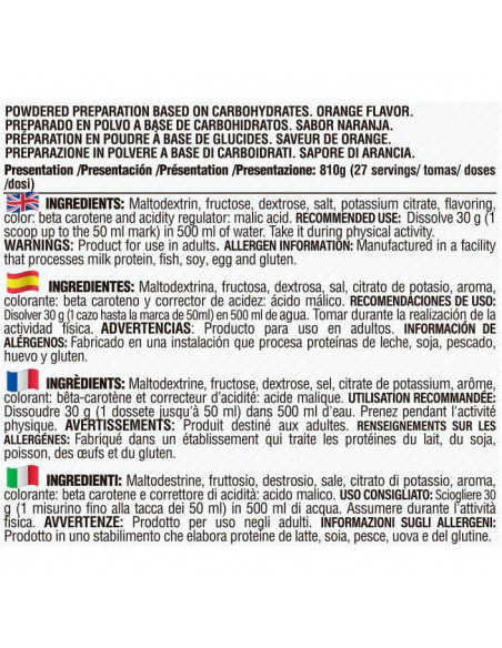 Disolver x gramos en 500ml de agua. Importante cumplir la cantidad para que la bebida tenga unas características isotónicas.