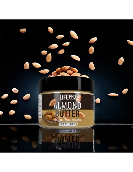 Life Pro Almond Butter a diferencia de otras cremas elaboradas con almendras, no contiene azúcares añadidos ni sal. Ha sido elaborado 100% con almendras tostadas. Life Pro Almond Butter mantiene las propiedades de las almendras tostadas intactas. Además, la crema de almendras es una gran fuente de fibra y de proteína.