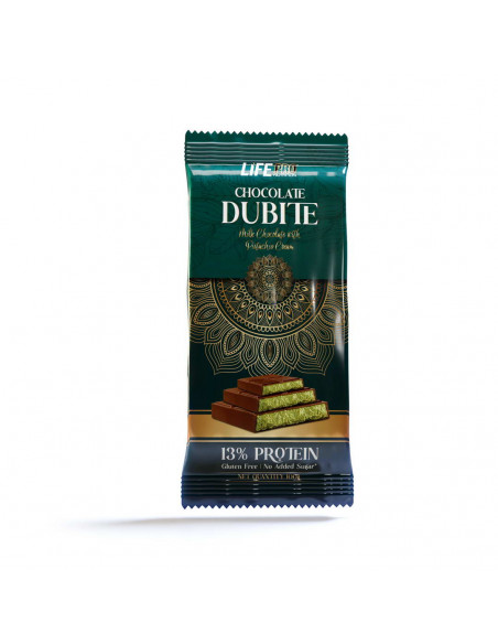 La suavidad sedosa y el matiz cálido del pistacho remiten a la tradición repostera de las cafeterías premium de Oriente Medio, especialmente en Dubái, donde la unión entre cacao y pistacho se ha convertido en un auténtico símbolo de sofisticación actual.