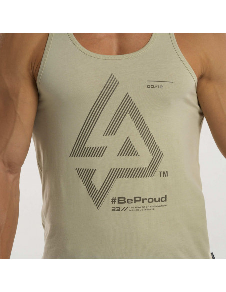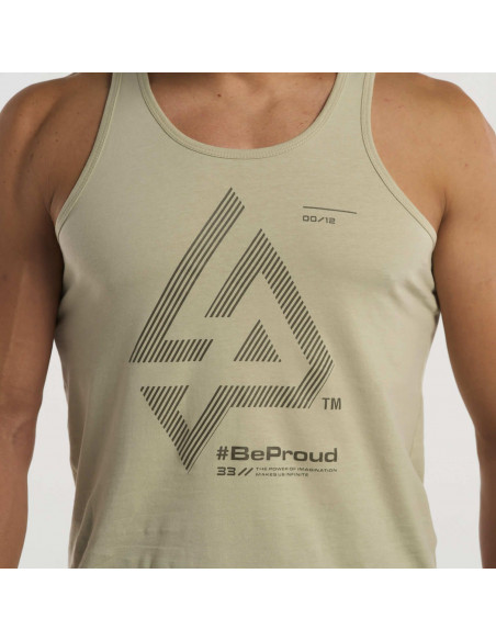 El logo grande de Life Pro y el hashtag #BeProud en el pecho representan fuerza y autenticidad. Este diseño transmite confianza y es perfecto para quienes desean proyectar su determinación en cada entrenamiento.