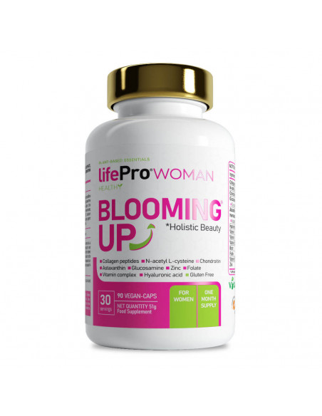Life Pro Blooming Up es un suplemento premium creado para mujeres que buscan resultados visibles y duraderos. Cada dosis combina ingredientes cuidadosamente seleccionados, como la Glucosamina, el Ácido Hialurónico y los Péptidos de Colágeno Hidrolizado, para ofrecer beneficios integrales que van más allá de la superficie.